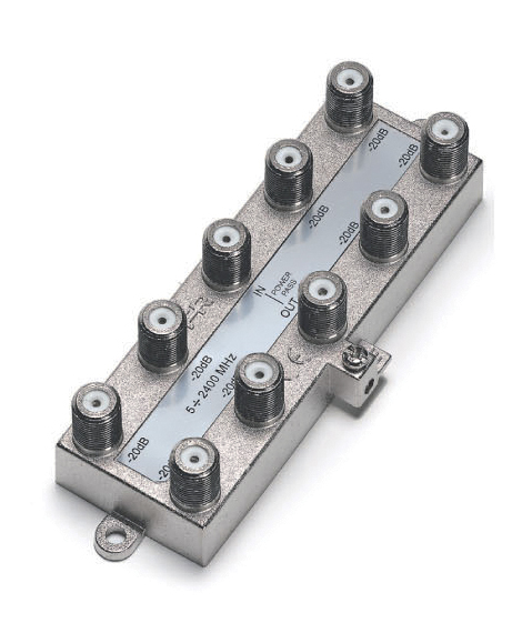 8-output vertical tap with 20dB attenuation and F connector for TV and Satellite band (5-2400MHz).