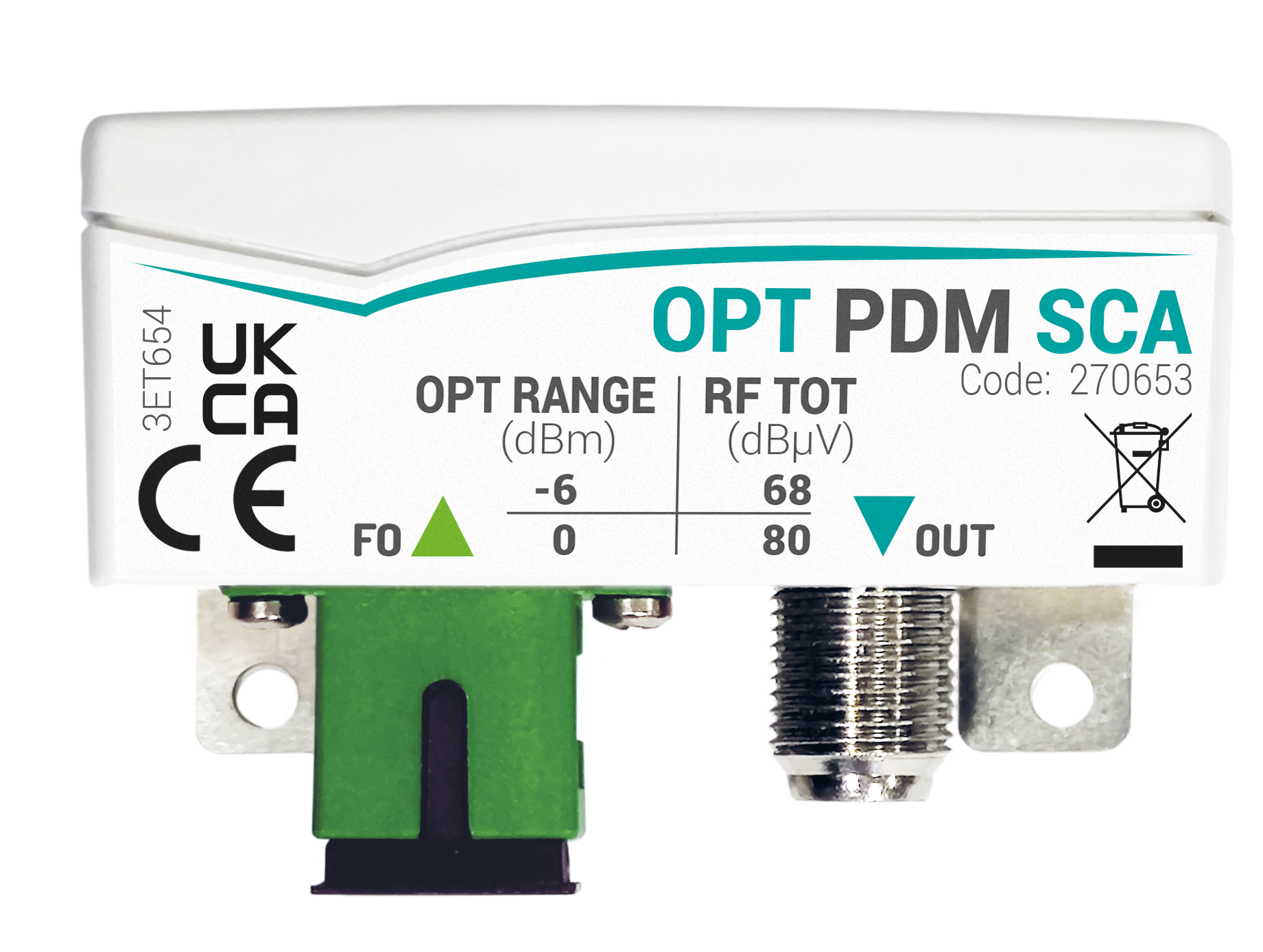 - Range di funzionamento ottico (tipico): da 0 a -6dBm