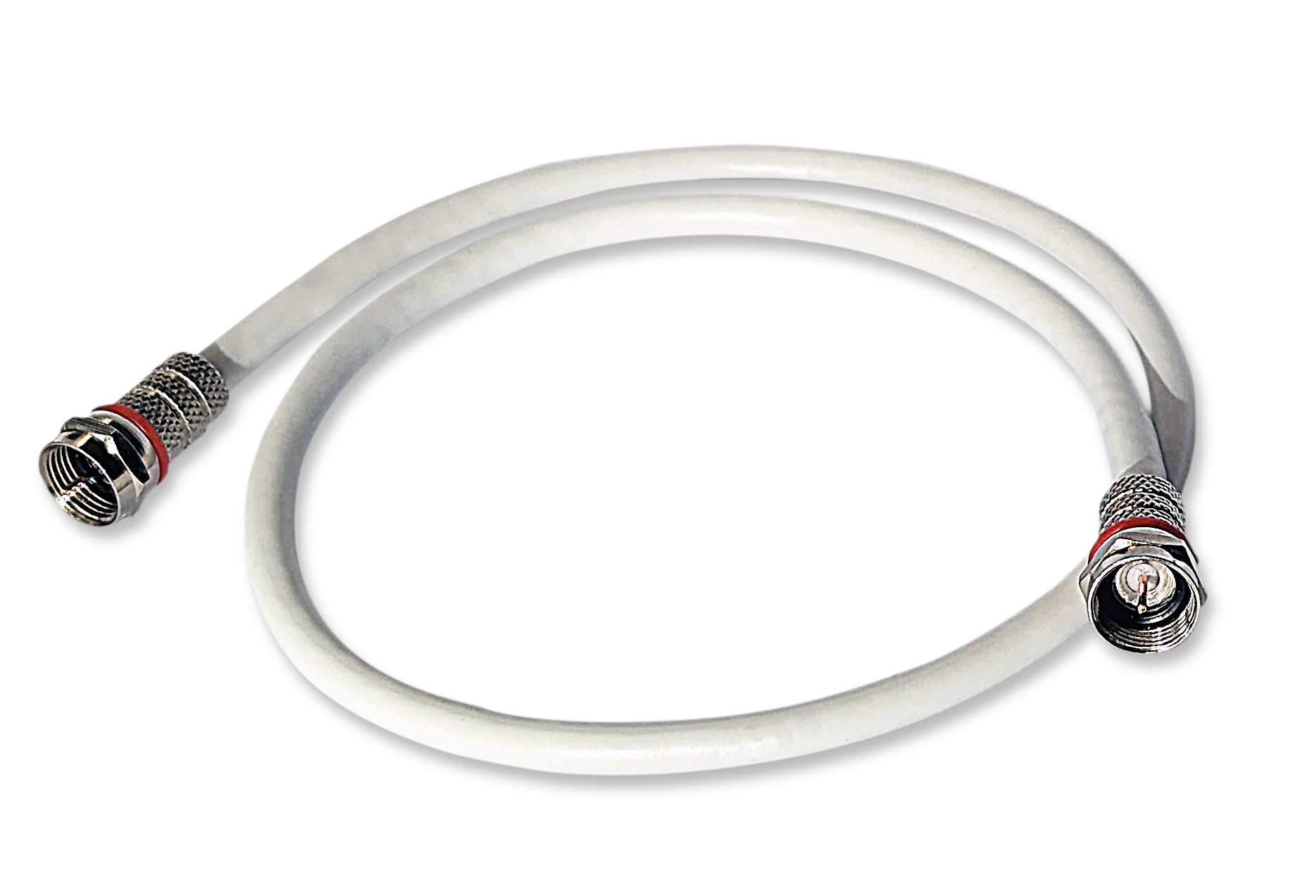 Bretella di cavo coassiale da 5 mm in PVC bianco di lunghezza 50 cm con connettori F ad avvitare.