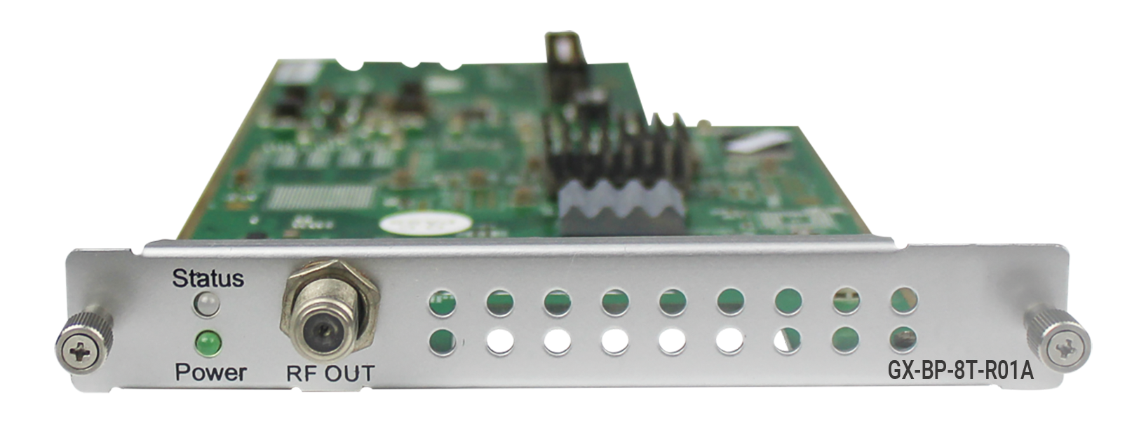 Il multi-modulatore digitale GX-BP-8T-R01A è dotato di un connettore di uscita coassiale RF (F Femmina) ed è in grado di creare fino a 8 multiplex digitali terrestri DVB-T. Il modulatore è la soluzione di transmodulazione ideale ed efficiente per la distribuzione dei programmi sintonizzati dai moduli satellitari o digitali terrestri inseriti nello stesso chassis o disponibili in condivisione sullo stesso backplane GALAXIA, anche quelli IPTV in ingresso multicast.