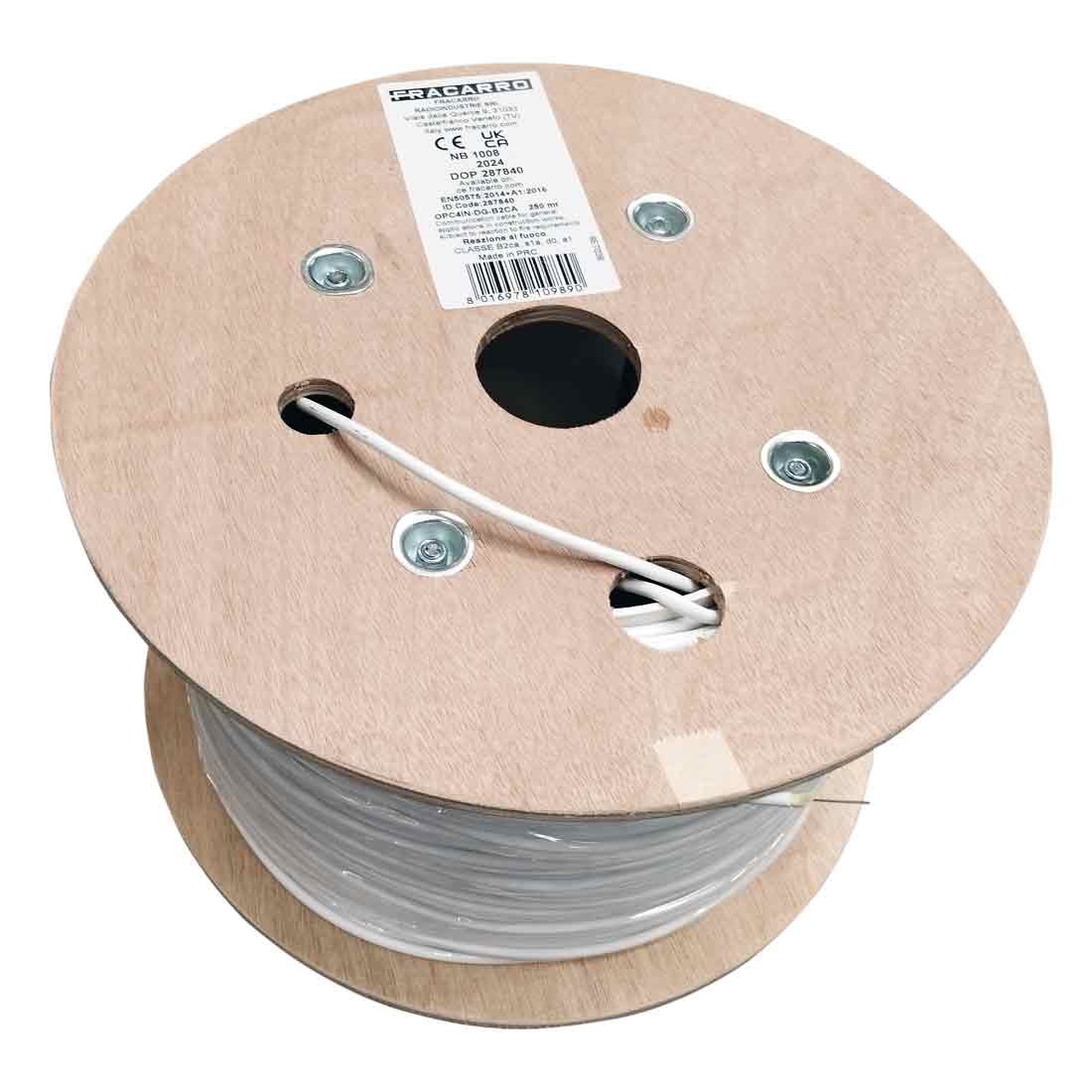 Cavo in fibra ottica monomodale da interno doppia guaina, con 4 fibre 9/125 (G.657 Categoria A). Classificazione CPR B2ca, s2, d0, a1.